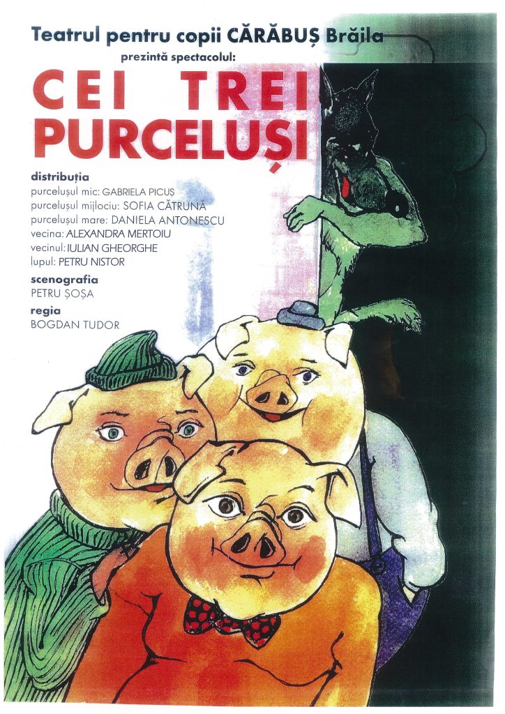 Vă invităm să descoperiți povestea veselă și plină de învățăminte a celor trei purceluși care pornesc în lume pentru a-și construi propriile case. Fiecare alege un alt drum, însă odată cu apariția Lupului cel viclean, curajul, istețimea și puterea prieteniei devin cele mai importante arme.
