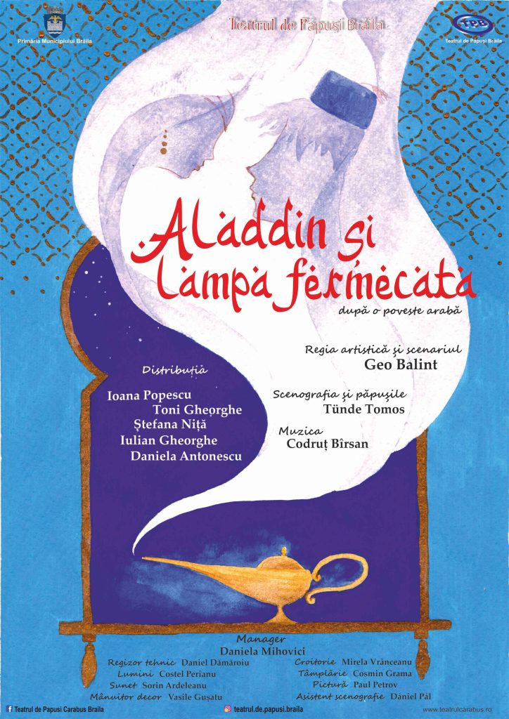 …Toţi visăm să ne fie mai bine, dar din păcate visăm prost, visăm la ce este material… în loc să cerem să fim sănătoşi şi fericiţi, ne rugăm la Dumnezeu DOAR cu gândul la bunuri materiale. În spectacolul nostru, povestea lui Aladdin e foarte puţin atinsă problema bogăţiei. Ce anume cere Aladdin prima dată duhului lămpii? De mâncare…! Ce mai cere Aladin de la lampa FERMECATĂ ? Să se însoare cu fata pe care o iubește ! Nu vezi în „Aladdin” nebunia după adunat bogăţii. Am uitat ce este cu adevărat important în viaţă…